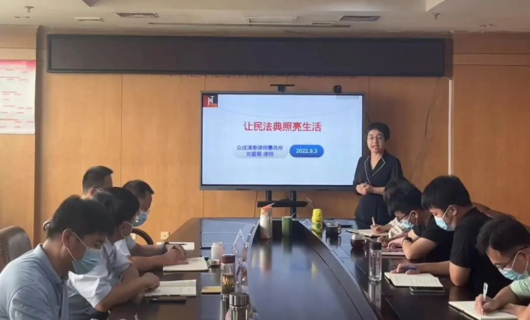 為增強(qiáng)員工法律意識(shí),切實(shí)提高風(fēng)險(xiǎn)防范意識(shí),9月3日上午,市財(cái)鑫集團(tuán)組織開展第七期財(cái)鑫大學(xué)堂學(xué)習(xí),邀請(qǐng)山東眾成清泰(德州)律師事務(wù)所劉愛(ài)菊律師開展《民法典》專題普法培訓(xùn),集團(tuán)領(lǐng)導(dǎo)班子及全體員工參加培訓(xùn)。 民法典是市場(chǎng)經(jīng)濟(jì)的基本法、公民生活的基本行為準(zhǔn)則,是法官裁判民商事案件的基本依據(jù)。培訓(xùn)過(guò)程中,劉愛(ài)菊律師以“讓民法典照亮生活”為主題,全面闡釋了什么是民法典、為什么要編纂民法典的基本問(wèn)題,詳細(xì)介紹了民法典在建國(guó)后的編纂歷程,具體解讀了民法典七編中總則、物權(quán)、合同、人格權(quán)、婚姻家庭、繼承、侵權(quán)責(zé)任等方面的重點(diǎn)內(nèi)容。 培訓(xùn)中,集團(tuán)全體員工積極參與,認(rèn)真聽講,踴躍回答律師提出的法律問(wèn)題,其中《物權(quán)法》、《合同法》等與集團(tuán)工作有著密切聯(lián)系,受到了大家的高度關(guān)注。 此次培訓(xùn)使市財(cái)鑫集團(tuán)全體員工進(jìn)一步了解了《民法典》有關(guān)內(nèi)容,增強(qiáng)了法治觀念,有效提升了自身法律風(fēng)險(xiǎn)防范意識(shí)。會(huì)議要求,集團(tuán)全體員工要在工作生活中自覺(jué)樹立法治意識(shí),更好地運(yùn)用法律武器保護(hù)自身權(quán)益、維護(hù)公司利益與榮譽(yù),推動(dòng)集團(tuán)公司法制化進(jìn)程,為集團(tuán)高質(zhì)量發(fā)展貢獻(xiàn)更大力量。